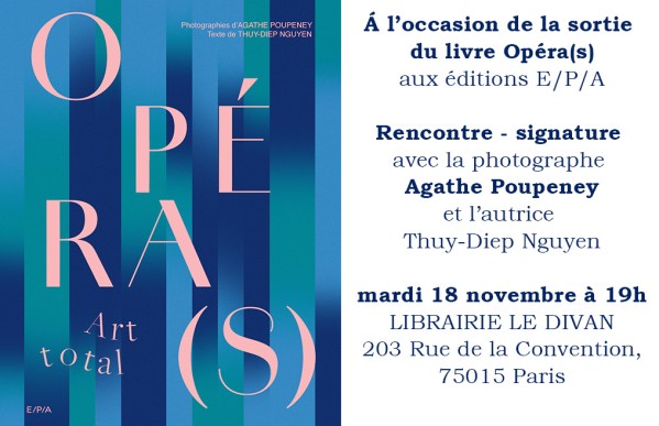 Opéra(s) - Art total de Agathe Poupeney (photographe), Thuy-Diep Nguyen (autrice) aux éditions E / P / A Rencontre - signature du livre avec la photographe Agathe Poupeney et l’autrice Thuy-Diep Nguyen mardi 18 novembre à 19h LIBRAIRIE LE DIVAN 203 Rue...