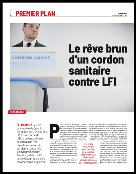 Par Valentina CAMU© Corentin Fohlen / pour DE VOLKSKRANT / Divergence. Lyon, France. 21 fevrier 2026. Marche...