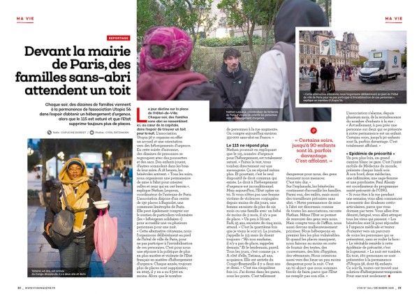 Permanence Utopia 56 et Medecins du Monde pour l'aide aux sans abris. A lire dans Viva avec Capucine Bordet à la plume.