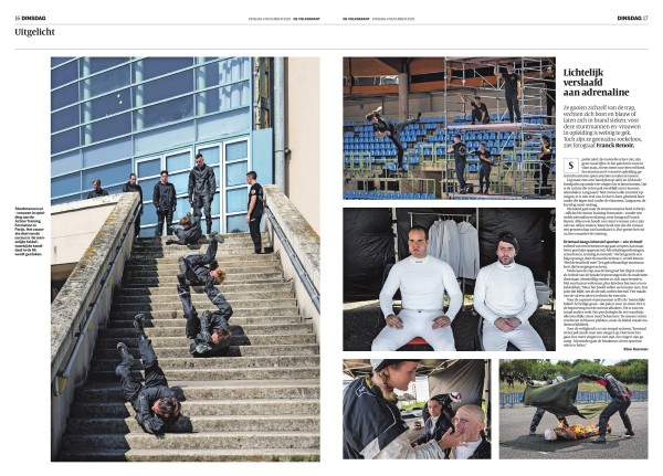 Double page sur Action training Ecole de cascadeurs dans de Volkskrant