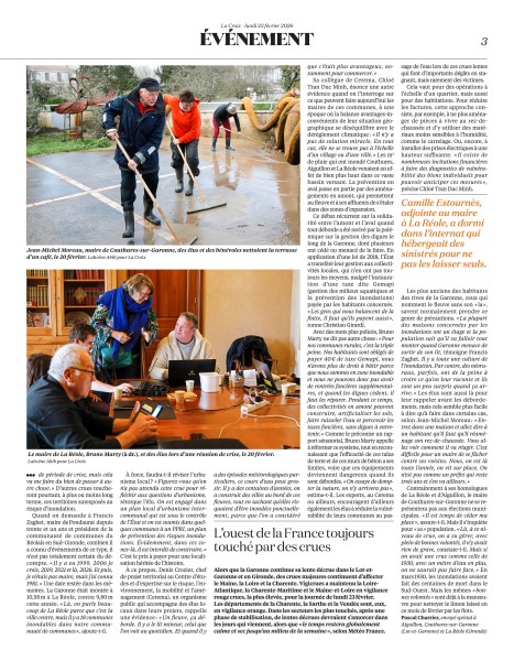 La Croix du 23 février 2026 sur les inondations dans le Lot et Garonne https: / / www.la-croix.com / societe / face-aux-inondations-les-maires-ruraux-en-premiere-ligne-on-est-toute-la-journee-sur-le-front-20260222