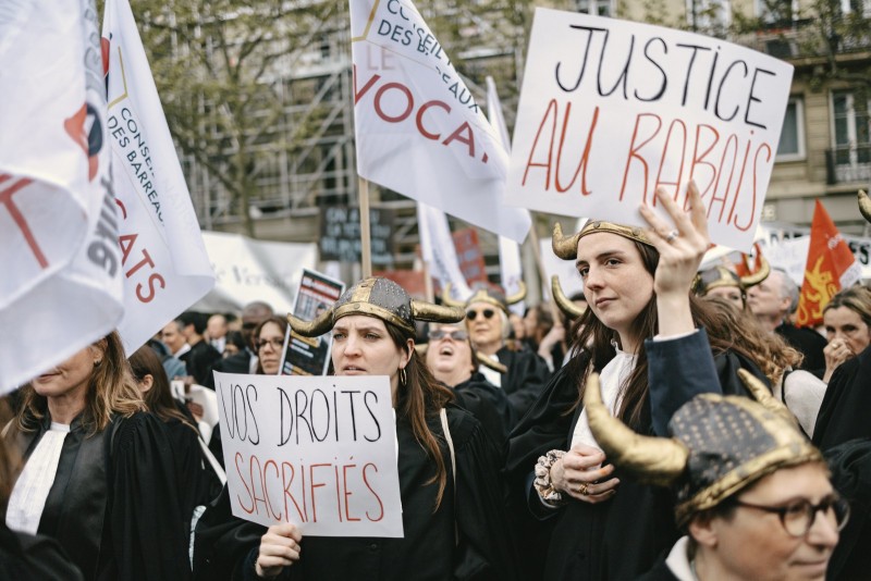 13042026. Paris. Senat. Jardin du Luxembourg. Manifestation des avocats contre la reforme de la...