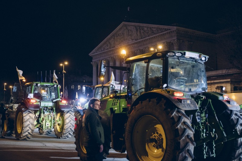 Un cortège de plus de 350 tracteurs s'est rendu aux abords de l'Assemblée nationale aux...