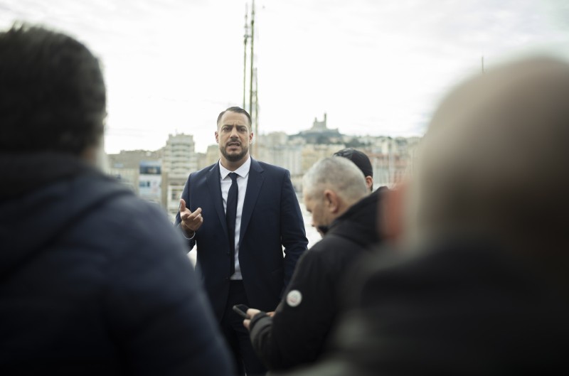 Marseille le 9 février 2026. Vieux port devant la mairie. Le Candidat LFI Sebastien DELOGU...