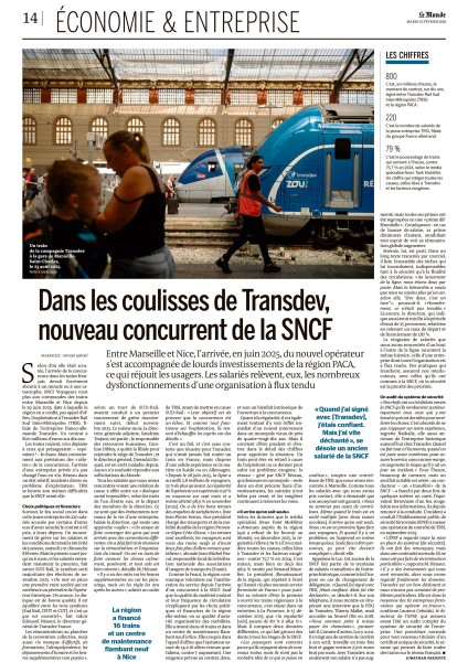Dans Le Monde article sur le nouveau concurent de la SNCF en PAca