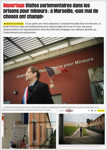 Visite parlementaire de la prison pour mineurs de Marseille dans Libération