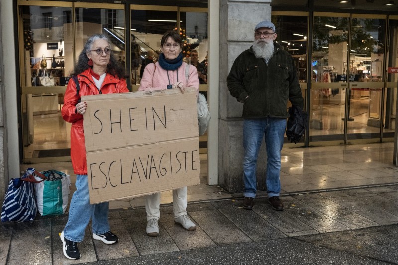 Par Marie MAGNINUn protestatoire devant le magasin lors de l'ouverture magasin SHEIN au BHV