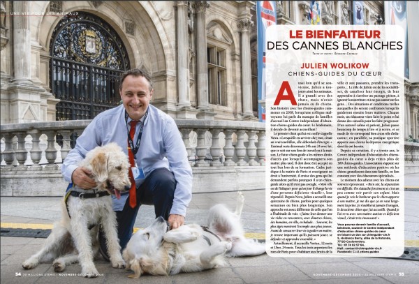 Parution double page dans la Rubrique "Une vie pour les animaux" - Chiens-Guides du Coeur - Décembre 2025 - Texte et photos