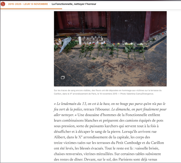 Une photo exposée à la cité des sciences et de l'industrie dans le cadre du sujet "ce que dit la science des attentats". Exposition visible jusqu'au 22 avril 2026.