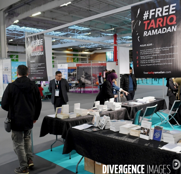 Rencontre anuelle des musulmans de france ex UOIF au Bourget le 30 mars 2018. Stand pour la liberation de Tatiq Ramadan