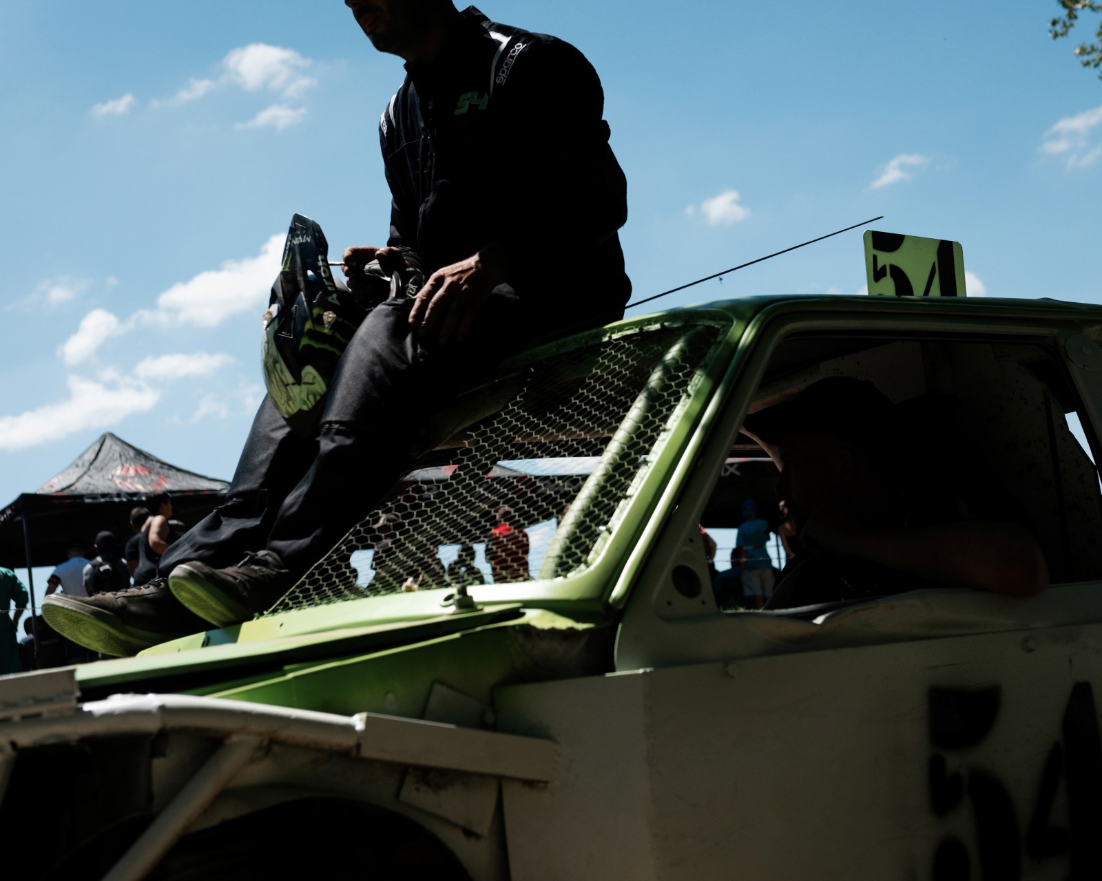 Avant le début de la compétition pour pouvoir se présenter au public, les pilotes rejoignent le circuit assis sur le toit de leurs voitures c'est donc les mécaniciens qui les y conduisent et prennent le volant.