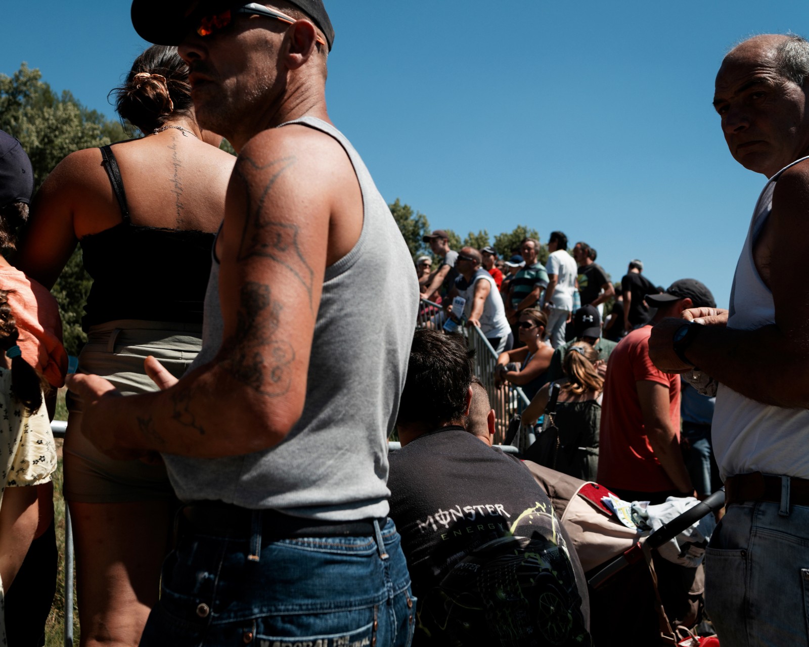 Le public regardant la course de stock-car de Brioude en pleine chaleur..
