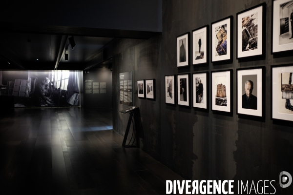 Exposition permanente du musée Pierre Soulages. La salle du prologue avec des portraits de Pierre Soulages réalisés par le photographe Claude Gassian.