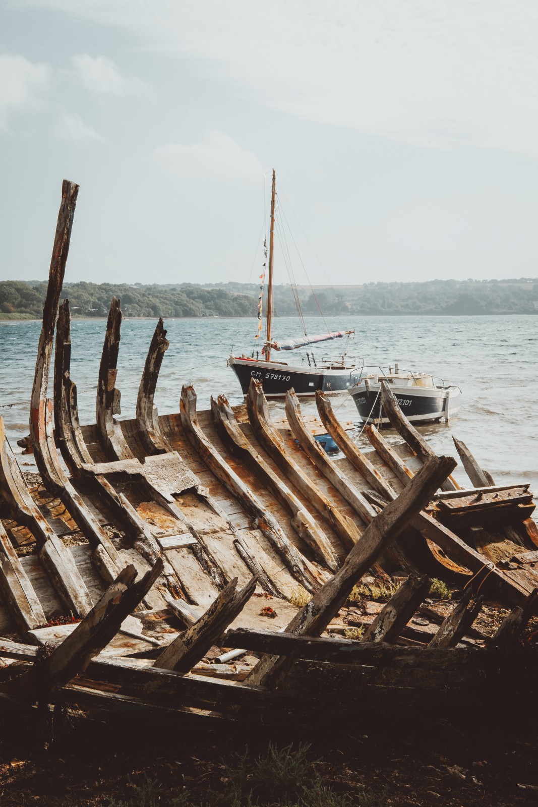 France, Finistère (29), presqu'ile de Crozon , parc naturel régional d'Armorique, Cimetière de bateaux de Rostellec.