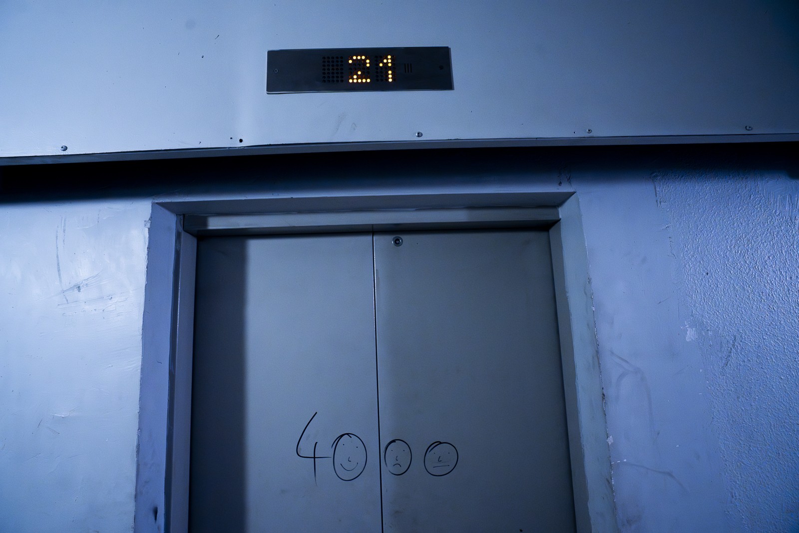Porte d'ascenseur de la tour Leclerc de l’ancienne Cité de 4000.