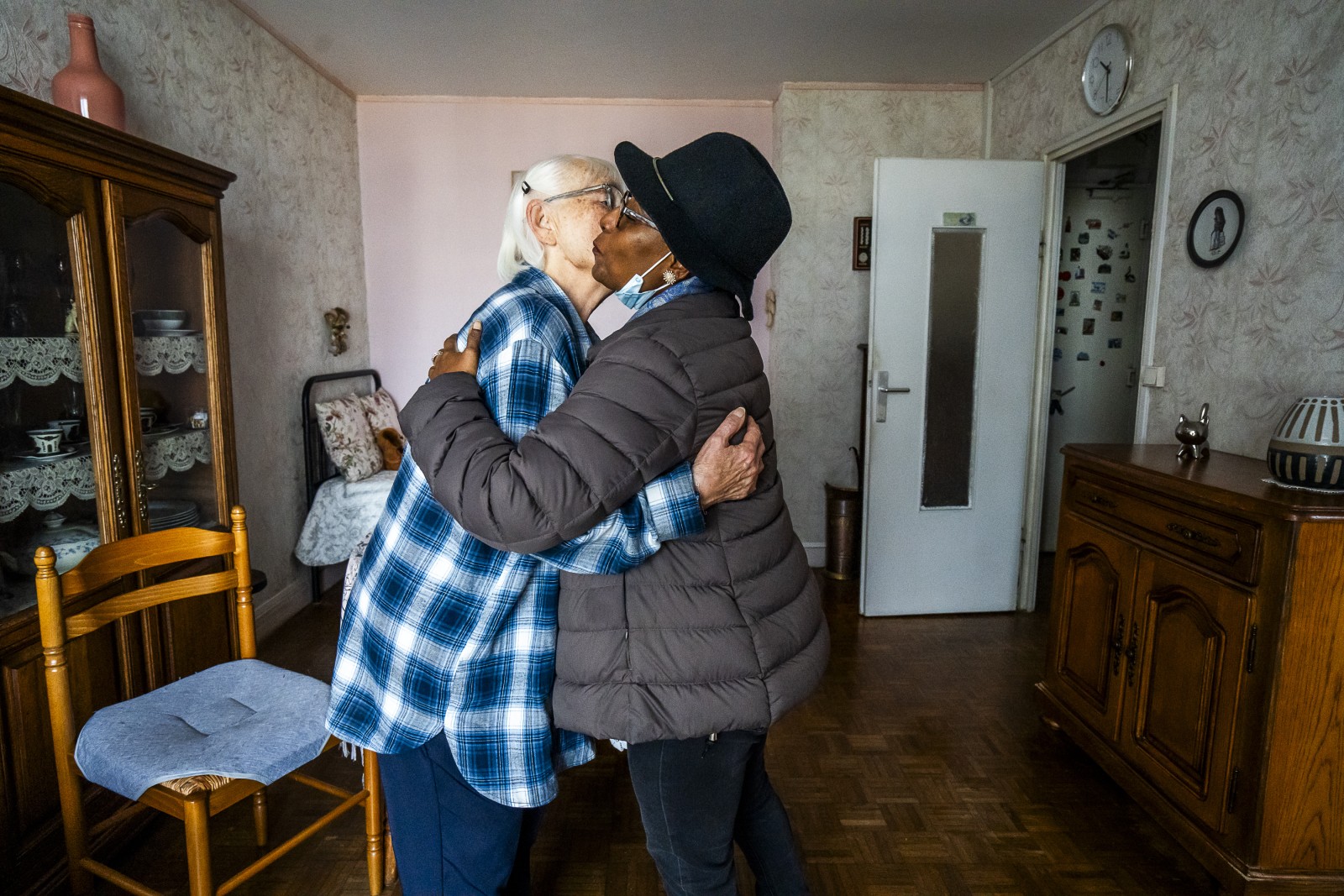 Yvette et Mariama se serrent dans les bras. Les deux femmes se connaissent depuis très longtemps. Mariama venait soigner le mari d’Yvette décédé il y a plusieurs années.