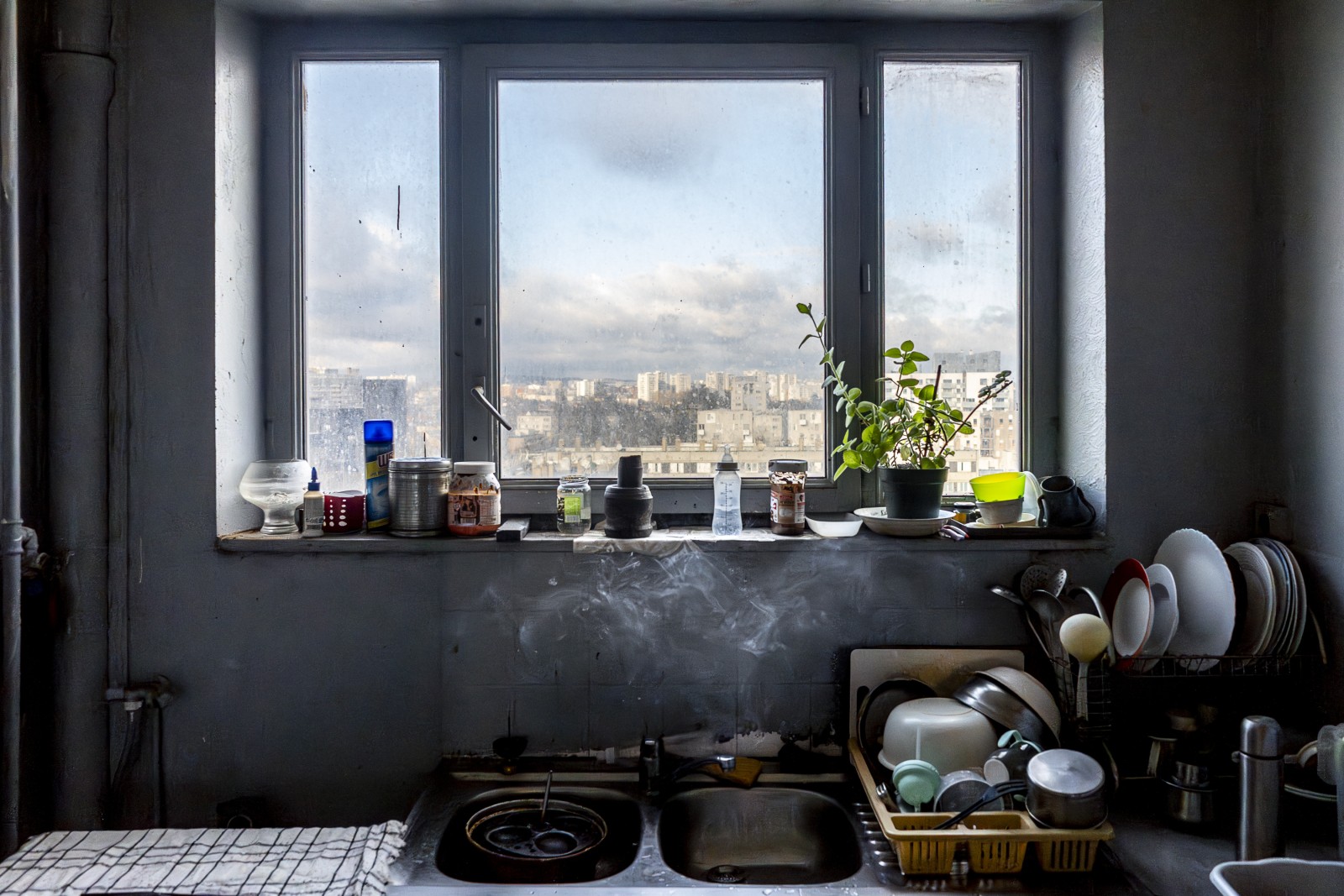 Vue depuis sur La Courneuve depuis la fenêtre de l’appartement où vivent Abdulaï, sa femme et sa fille. .