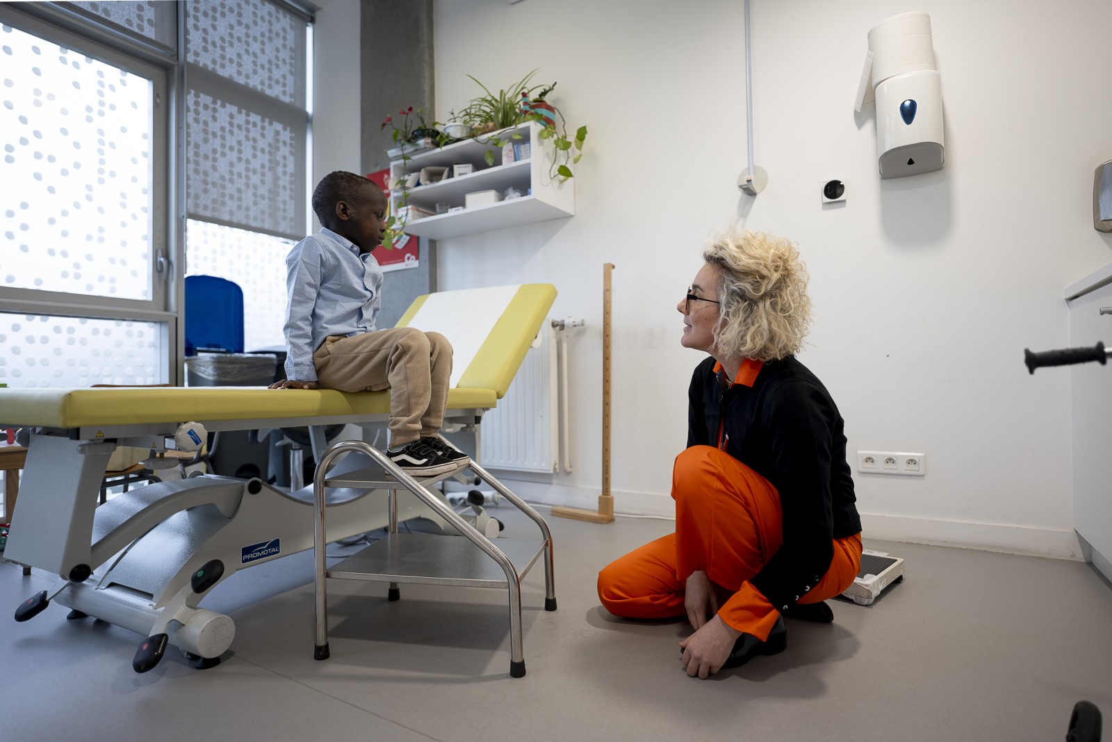 Charlotte s’entretient avec une enfant lors d’une consultation dans son cabinet au centre municipal de santé de La Courneuve.