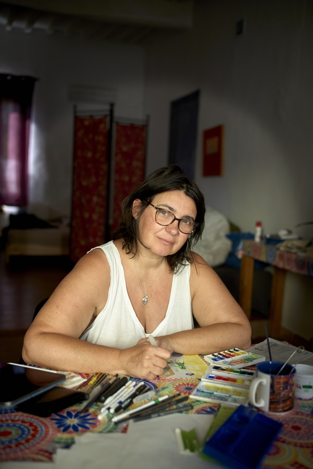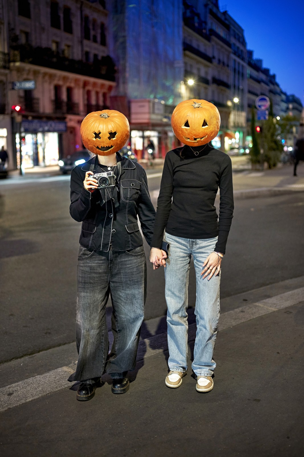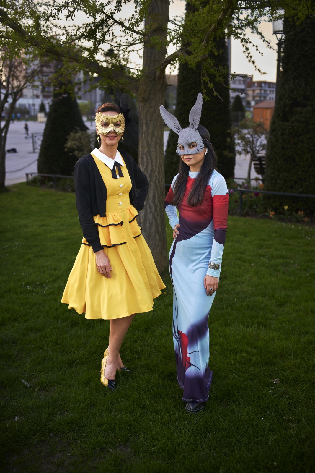 A Gagny (93) deux jeunes femmes posent avec les masques d'une créatrice Venezuellienne
