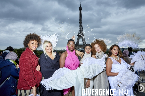 Defile Mode Grandes Tailles au Parvis du Trocadero , The All Sizes Catwalk, organisé par Georgia Stein, pour imposer le XXL à égalité avec le XXS dans les magazines, sur les affiches publicitaires ou et dans les défilés de mode. La lingerie est de Diva's boudoir