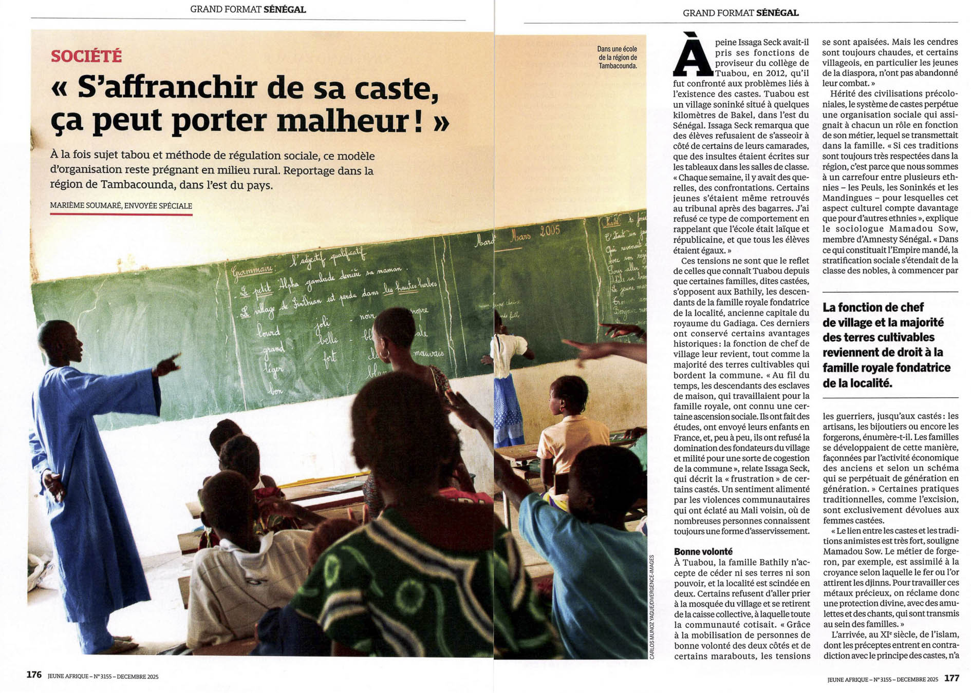 magazine Jeune Afrique déc 2025 "s"affranchir de sa caste, ça peut portre malheur"