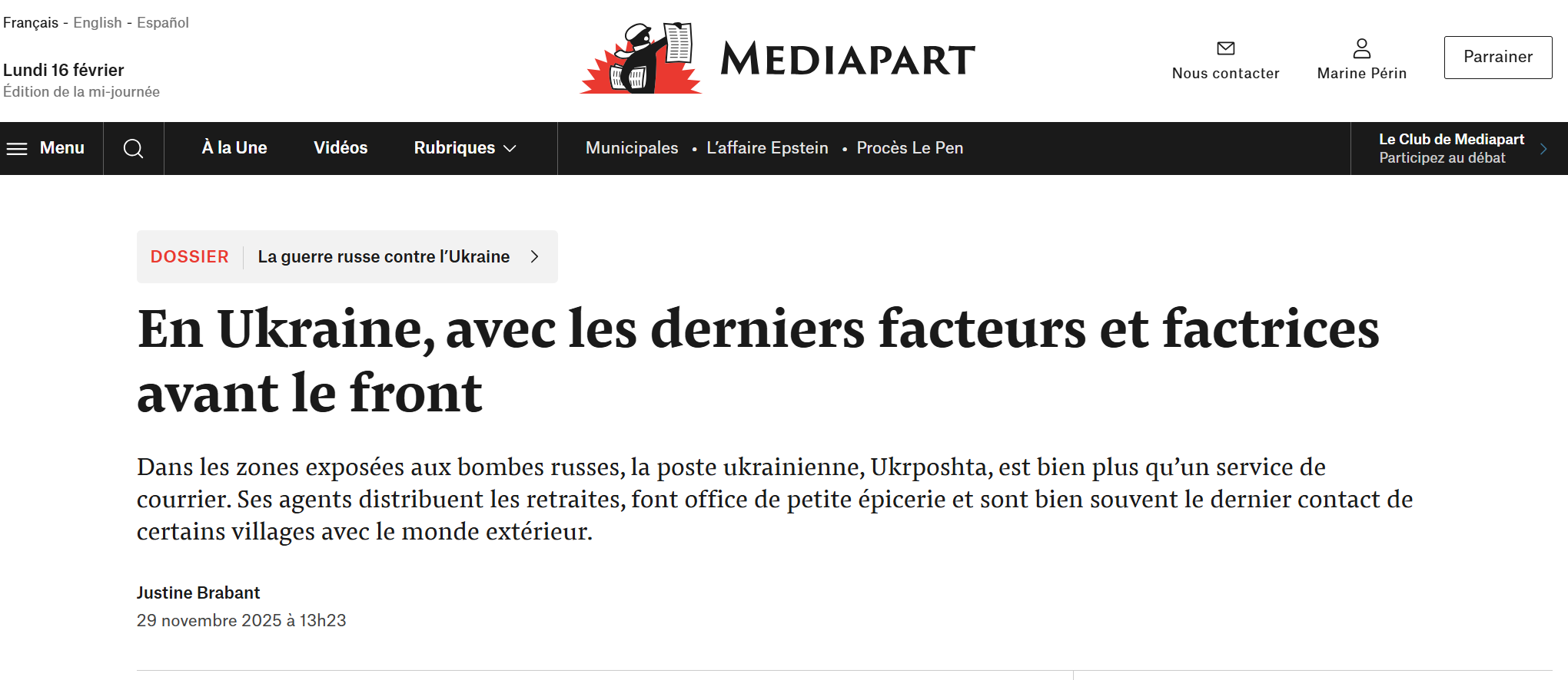 Mediapart / En Ukraine, avec les derniers facteurs et factrices avant le front