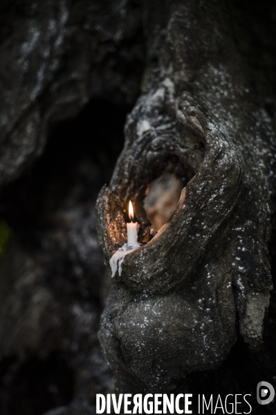 © Corentin Fohlen/ Divergence. Saut d'eau, Haiti. 16 juillet 2024. Pelerinage syncretique vaudou et catholique de Saut d'eau, a ville bonheur. Chaque annee les pelerins viennent se laver et purifier sous la cascade.