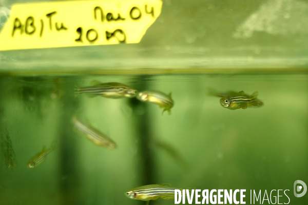 Le Zebra-Fish ou Poisson-Zebre est une des pierres angulaires des recherches de l?equipe, un des principaux modeles des experimentations.