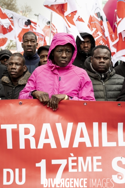 Journée internationale contre le racisme 2024. Les travailleurs sans papiers demandent à être régularisés, à la manifestation parisienne. International Day Against Racism 2024. Undocumented workers demand to be regularized, at the Parisian demonstration.