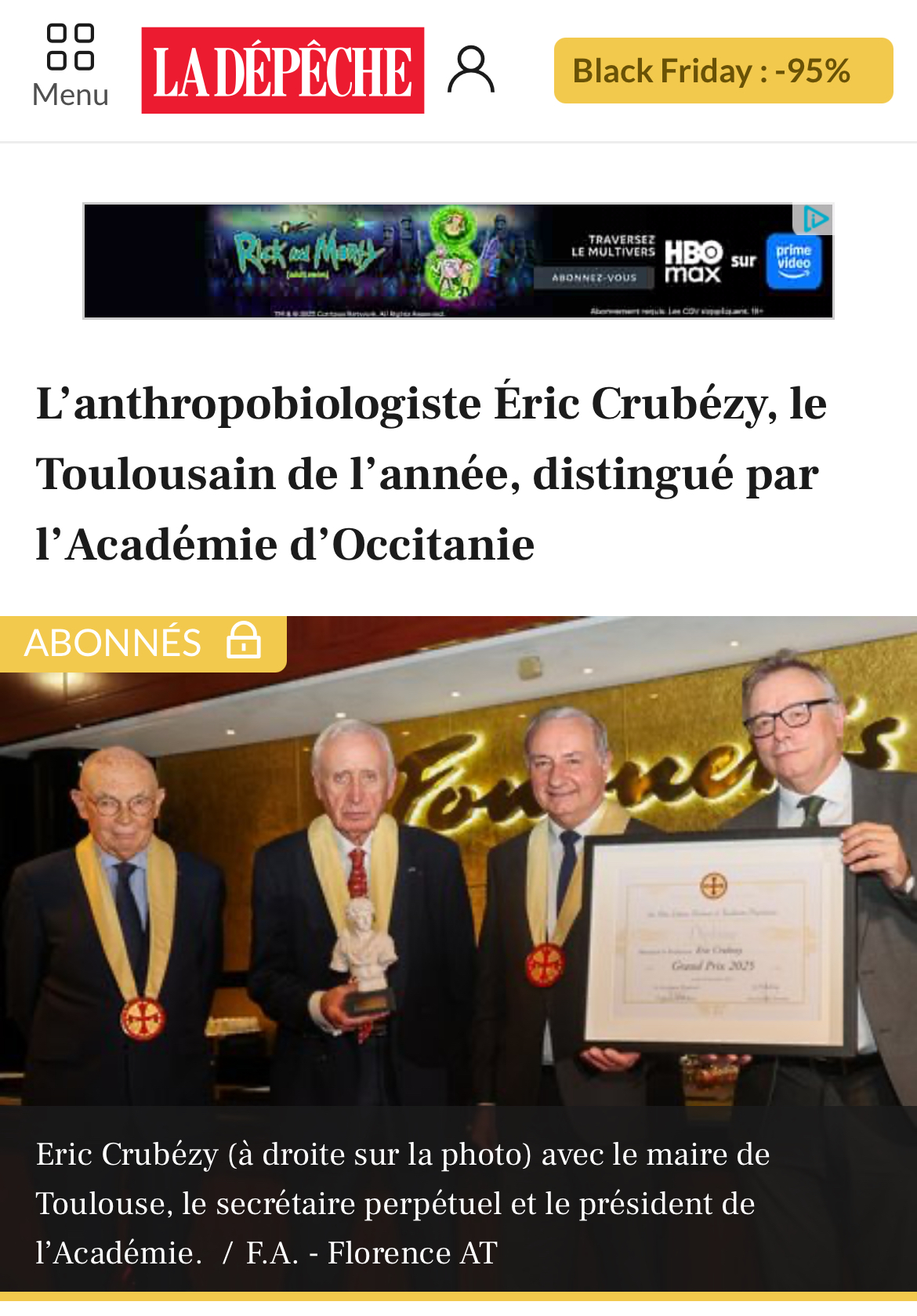 L’anthropologiste Eric Crubézy, déjà élu toulousain de l’année, est distingué par l’académie d’Occitanie.
