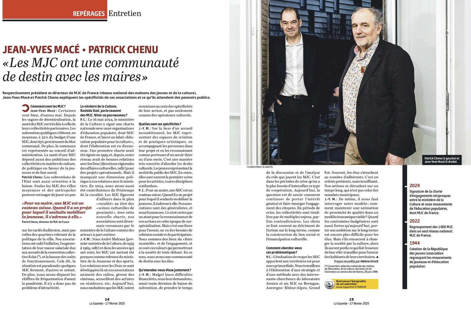 Jean-Yves Macé et Patrick Chenu pour La Gazette des Communes.