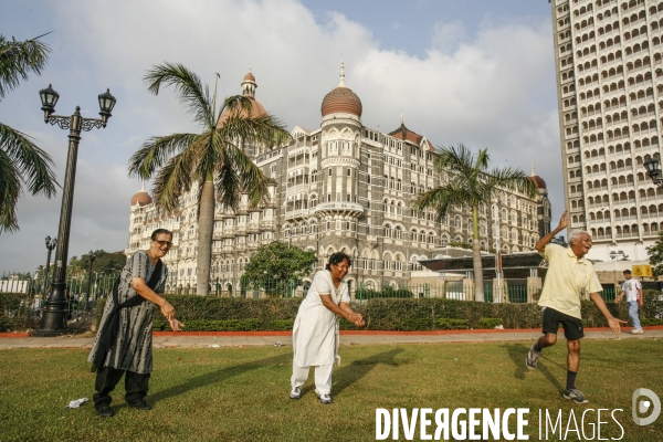 SŽance de gymnastique du rire devant l'Hotel Taj,tous les jours le Laughter club ˆ 7 h prŽcises invitent les Indiens ou les Žtrangers ˆ rire ,respirer,faire des exercices
