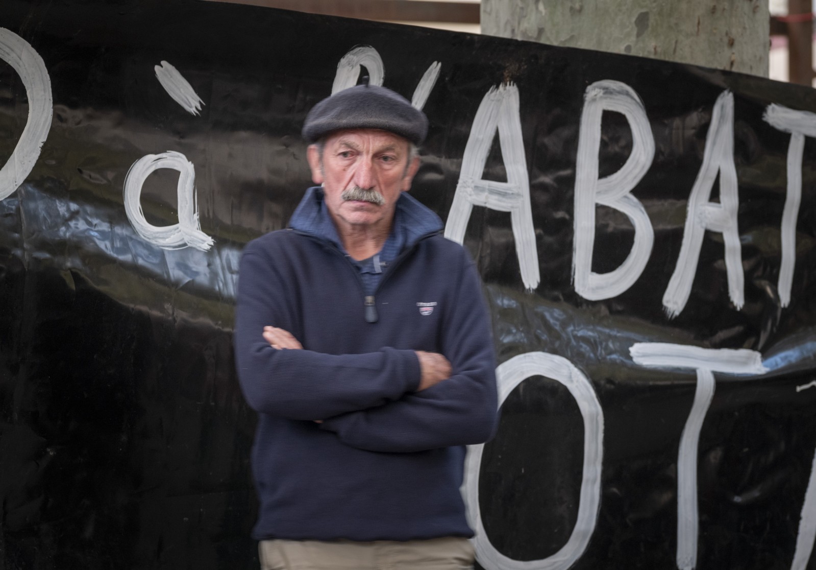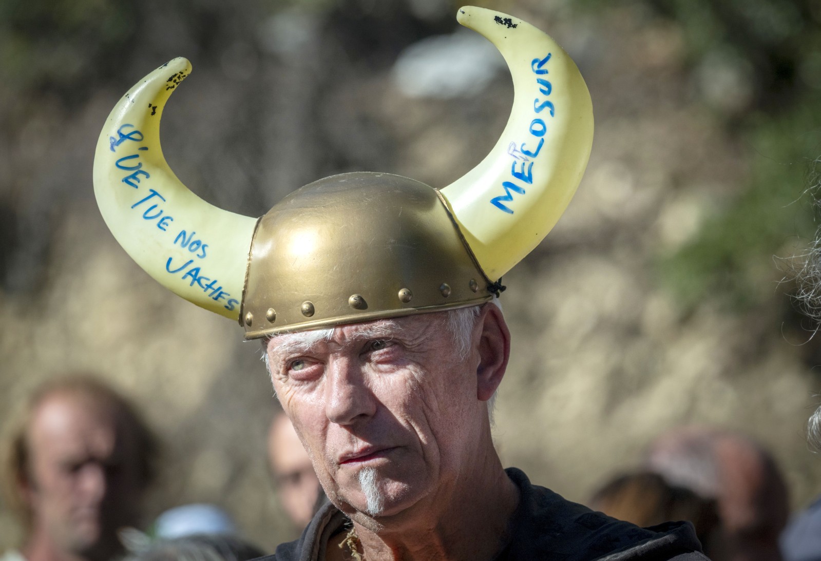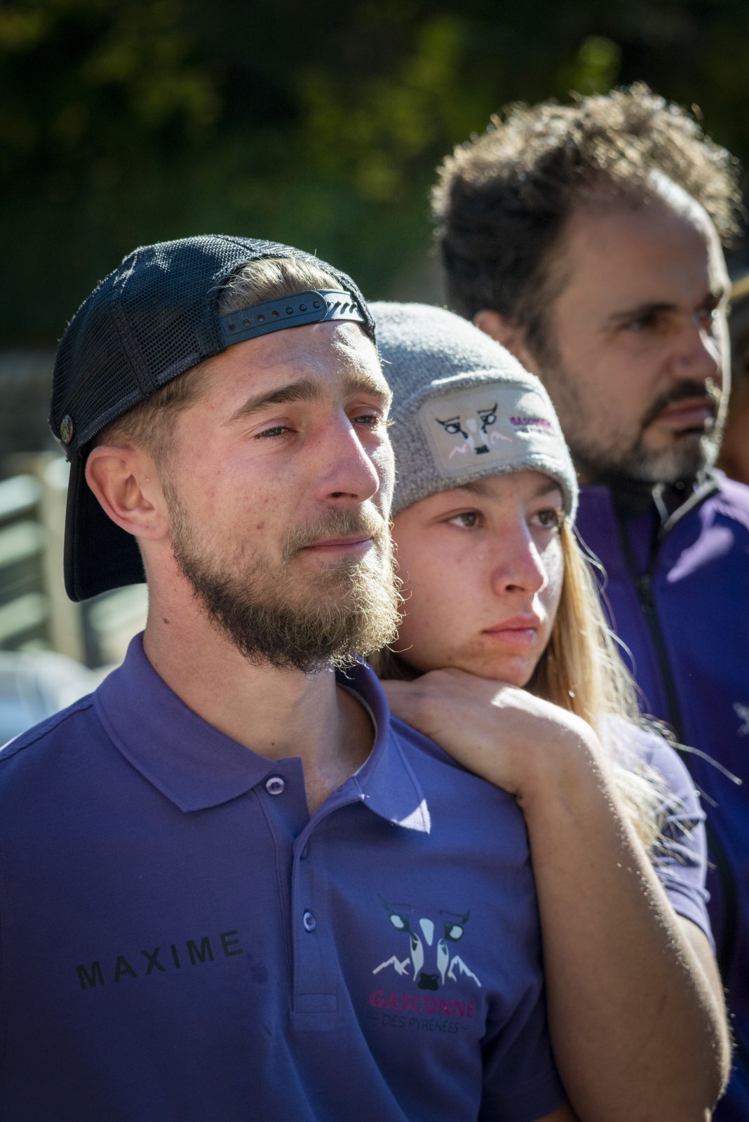 FRANCE/THUES entre VALLS(66°ELEVAGE) EPIDEMIE/ DEs manifestants venus de plusieurs departements du sud tentent de bloquer l'acces aux equipes veterinaires venues abattre deux troupeaux de bovins dont certaine betes sont atteinte de la dermatose bovine. Les organisations agricole en particulier le Confederation Paysanne s'opposent a l'abattage systématique du troupeau. l'Abattaage aura bien lieu à la tombee de la nuit. DEux eleveurs touches par la decision prefectorale. © Georges BARTOLI / Divergence-images.com