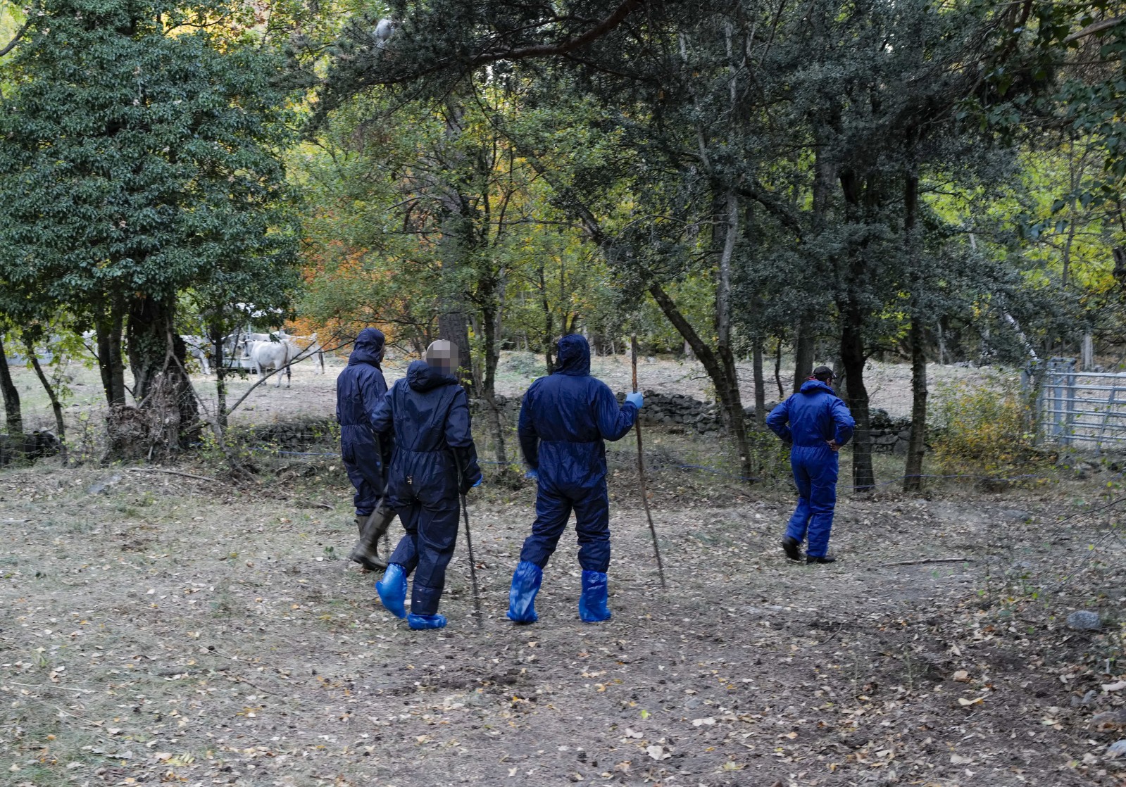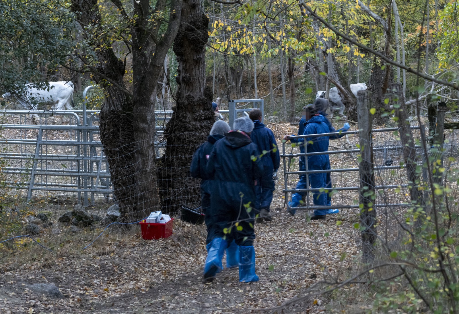FRANCE/THUES entre VALLS(66°ELEVAGE) EPIDEMIE/ Les organisations agricole en particulier le Confederation Paysanne s'opposent a l'abattage systématique du troupeau. l'Abattaage aura bien lieu à la tombee de la nuit. Des techniciens des services veterinaires mettent en place le dispositif d'abattage. © Georges BARTOLI / Divergence-images.com