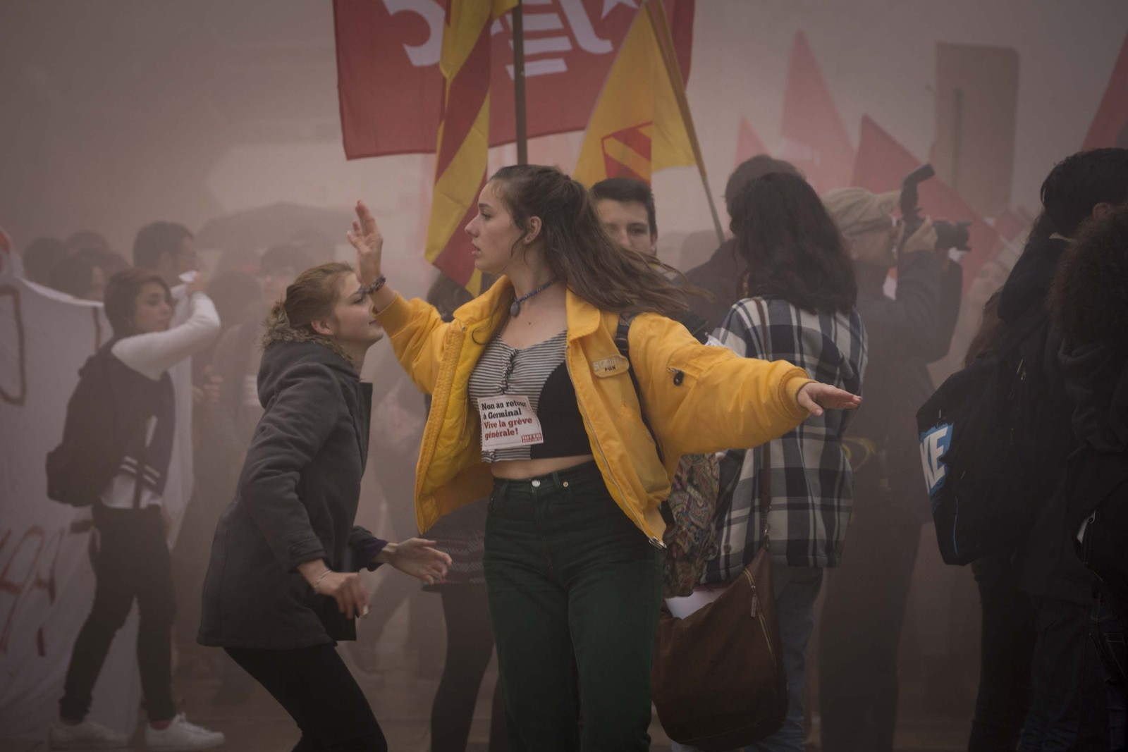 FRANCE/PERPIGNAN/MANIFESTATION/2016MAR09/ Manifestation des etudiants et lyceens soutenus par les syndicats de salaries contre le projet de loi El Khomri de modification du code du travail. © Georges BARTOLI / Divergence