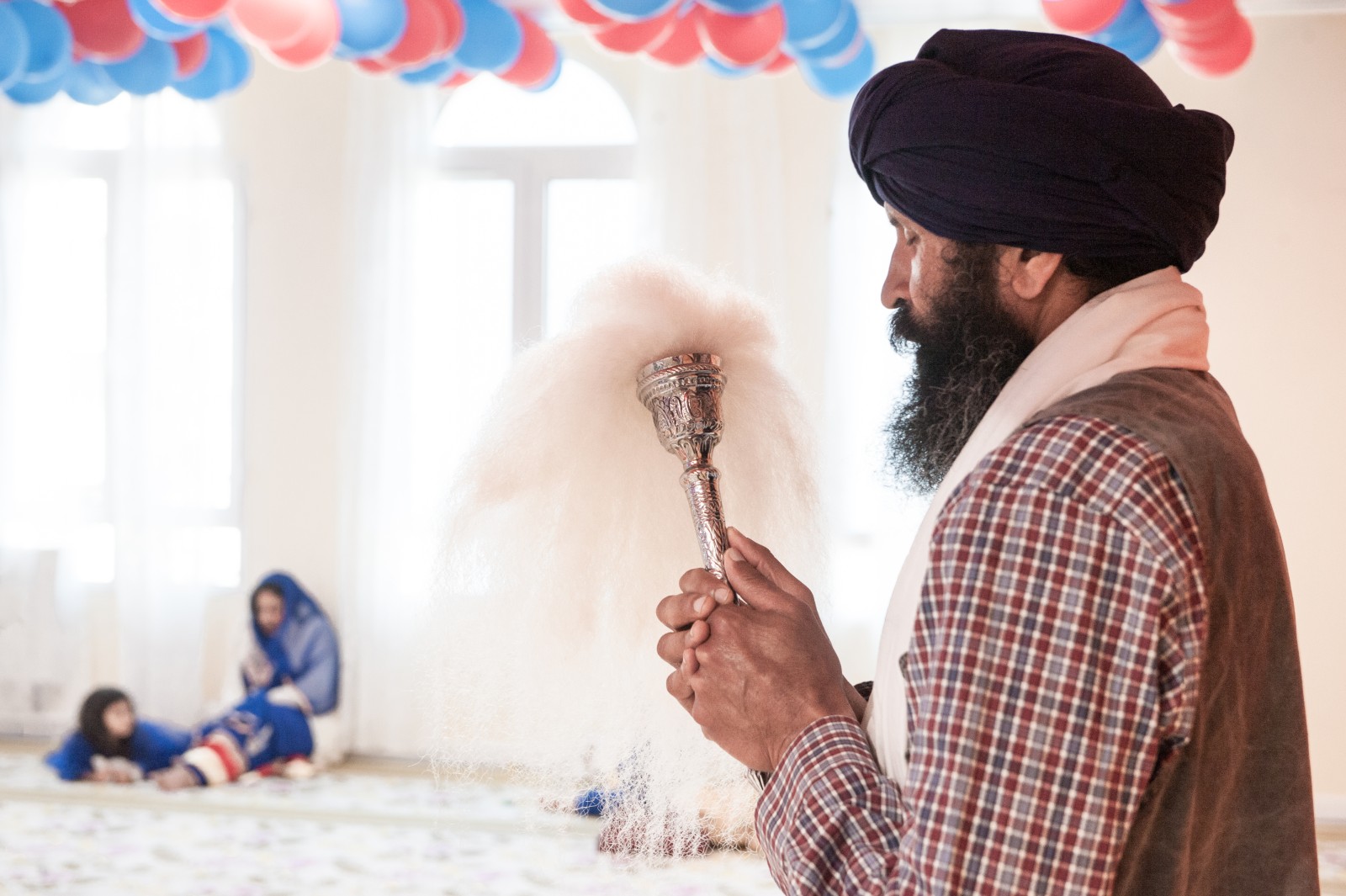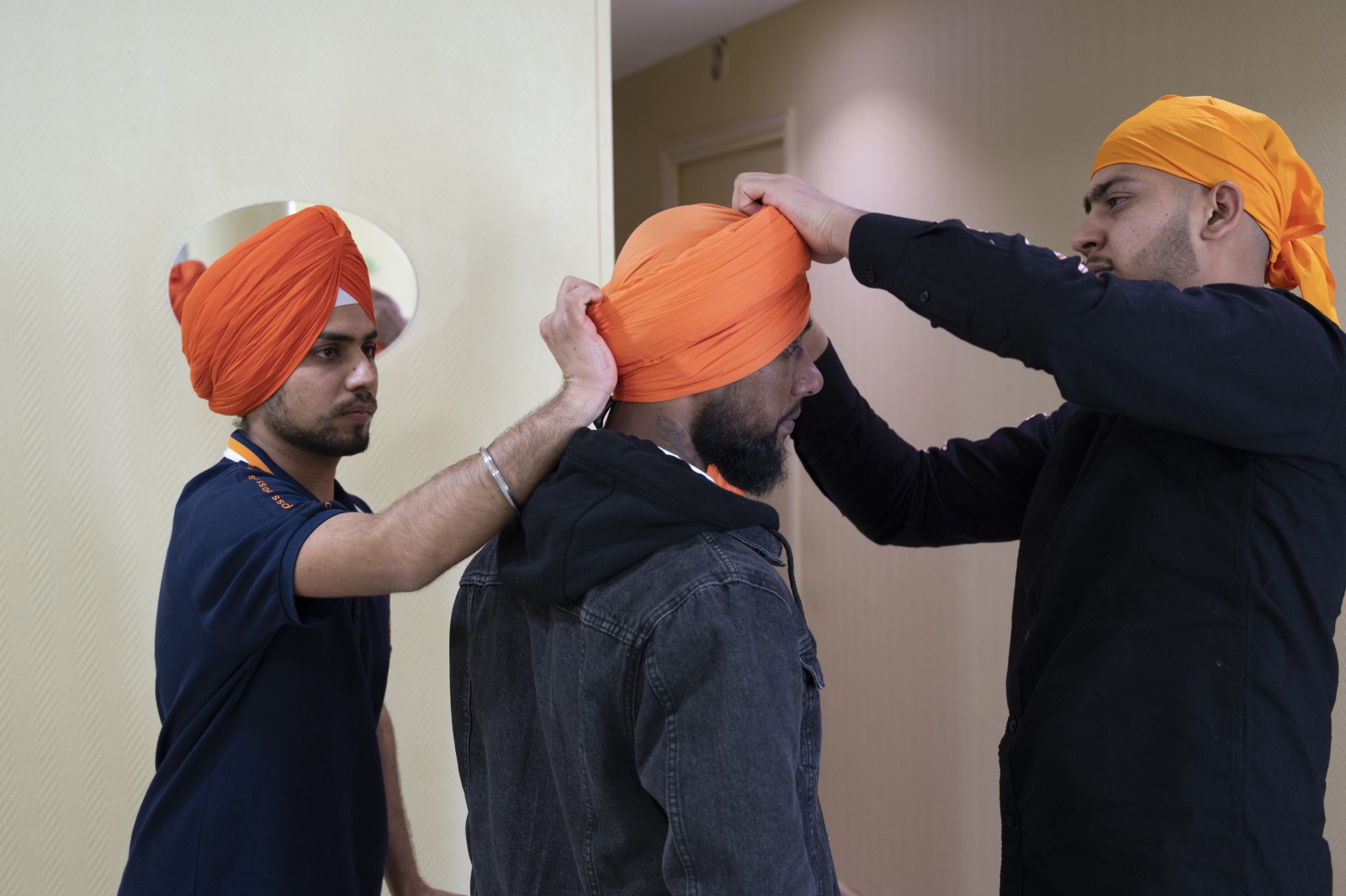 Le Vaisakhi est une fête traditionnelle et religieuse sikh, célébrée tous les ans au mois d'avril. Préparation du turban sikh (le dalstar)
