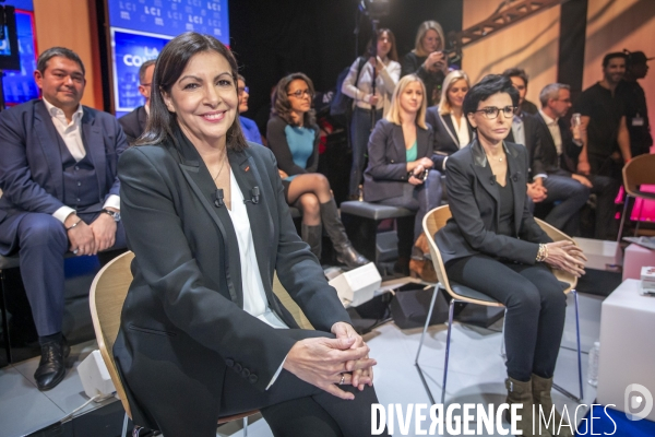 Anne Hidalgo et Rachida Dati participent au débat entre les candidats aux élections municipale à Paris sur le plateau de LCI à Boulogne-Billancourt, mercredi 4 mars 2020 - 2020©Jean-Claude Coutausse / Divergence pour Le Monde