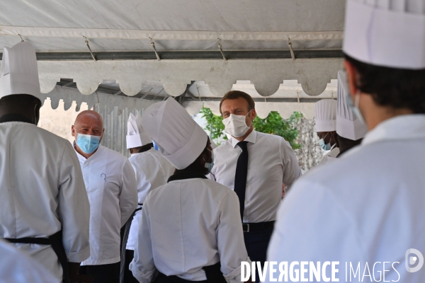 Mots clés : emmanuel macron, president , chambord, jeunesse, covid19, emmanuel, macron, domaine national de chambord, quartiers d'été 2020, formation, plan d'urgence, masque, marx, thierry marx, cuisine, cuisinier