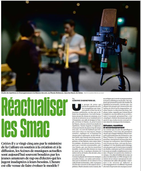 Libération du 4 Février 2023 : illustration de l'article "Réactualiser les Smac". Photographie Karine Le Ouay / Divergence