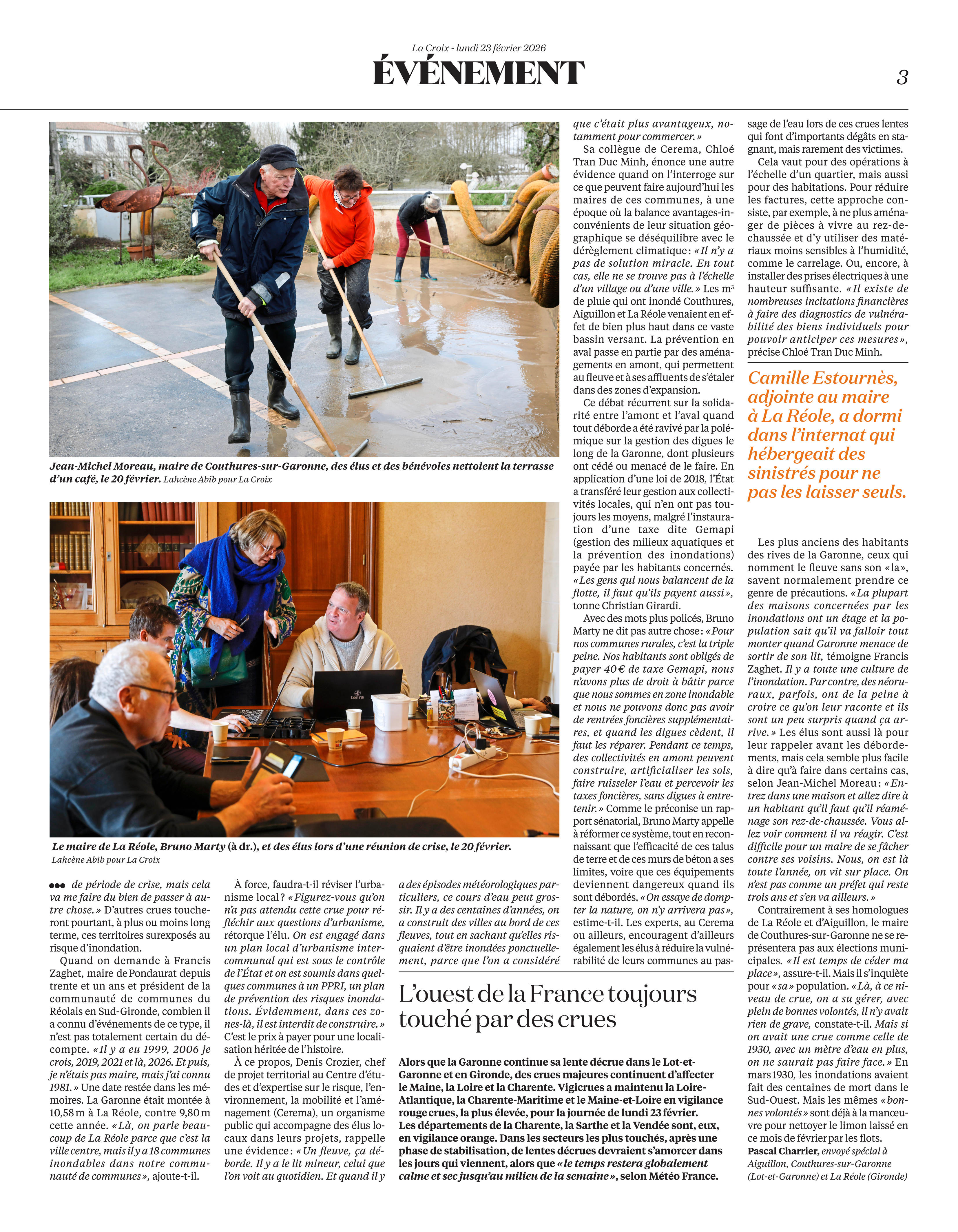 La Croix du 23 février 2026 sur les inondations dans le Lot et Garonne.