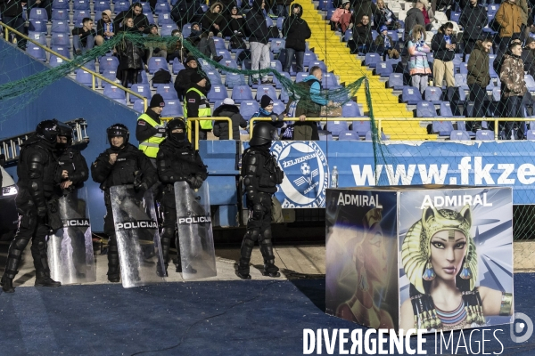 05032022. Bosnie-Herzégovine. BIH. Sarajevo. 30ème anniversaire de l'indépendance du pays. Sarajevo derby de football (en Bosniaque : Sarajevski derbi) est un match entre rivaux de la capitale de la Bosnie-Herzégovine FK Željezničar Sarajevo (bleu) et FK Sarajevo (bordeaux), les deux clubs les plus grands et les plus populaires du pays. La rivalité entre le FK Željezničar et le FK Sarajevo, se réfère à l'antagonisme entre les deux clubs. Victoire 2 à 0 du FK Željezničar. 05032022. Bosnia and Herzegovina. BIH. Sarajevo. 30th anniversary of the country's independence. Sarajevo football derby (in Bosnian: Sarajevski derbi) is a match between capital city rivals of Bosnia and Herzegovina FK Željezničar Sarajevo (blue) and FK Sarajevo (burgundy), the two biggest and most popular clubs from the country. The rivalry between FK Željezničar and FK Sarajevo, refers to the antagonism between the two clubs. 2-0 victory for FK Željezničar.