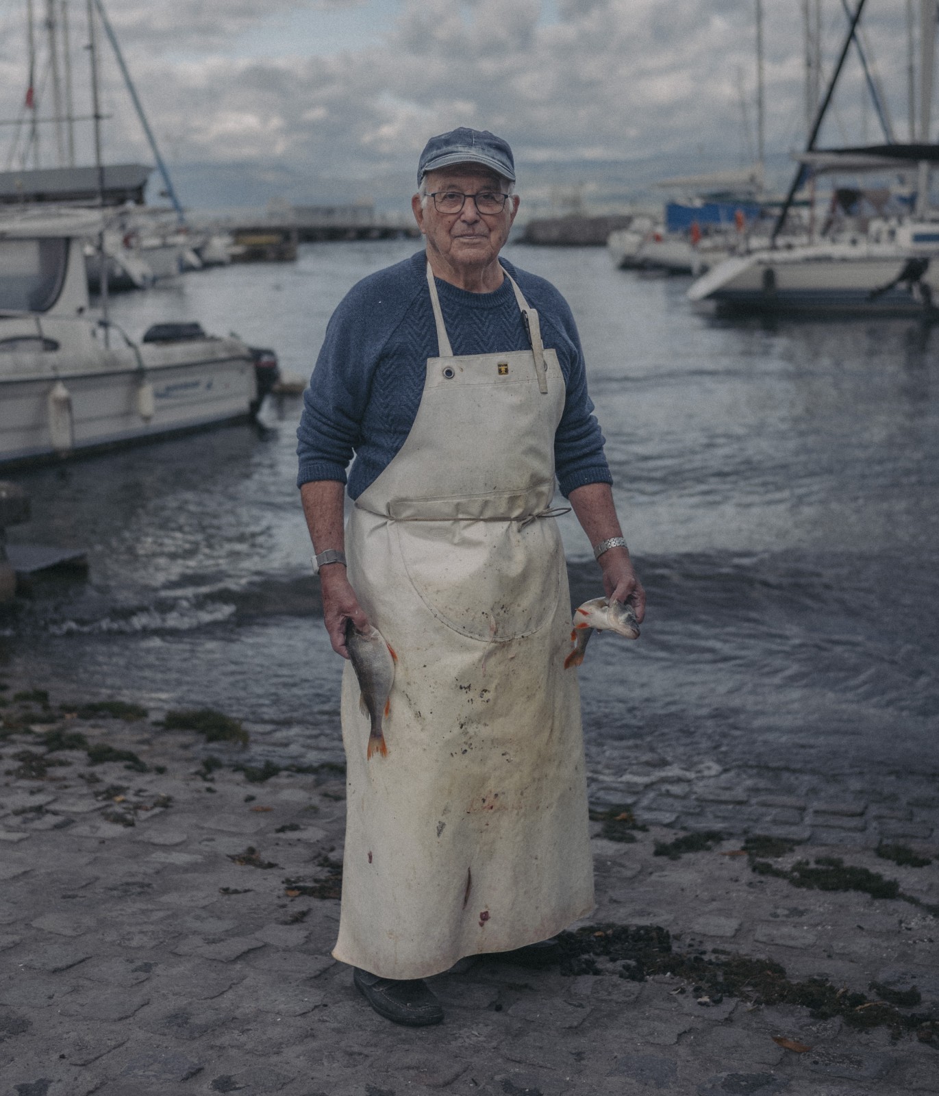 Le lac Léman se réchauffe quatre à cinq fois plus vite que les océans. Derrière ce chiffre, c’est tout l’écosystème de la plus grande réserve d’eau douce d’Europe occidentale qui vacille. A 93 ans, Robert Cusin a passé sa vie à pêcher sur le lac. Aujourd’hui, il aide à défaire les filets à quai. Thonon-les-Bains, 29 septembre 2024.