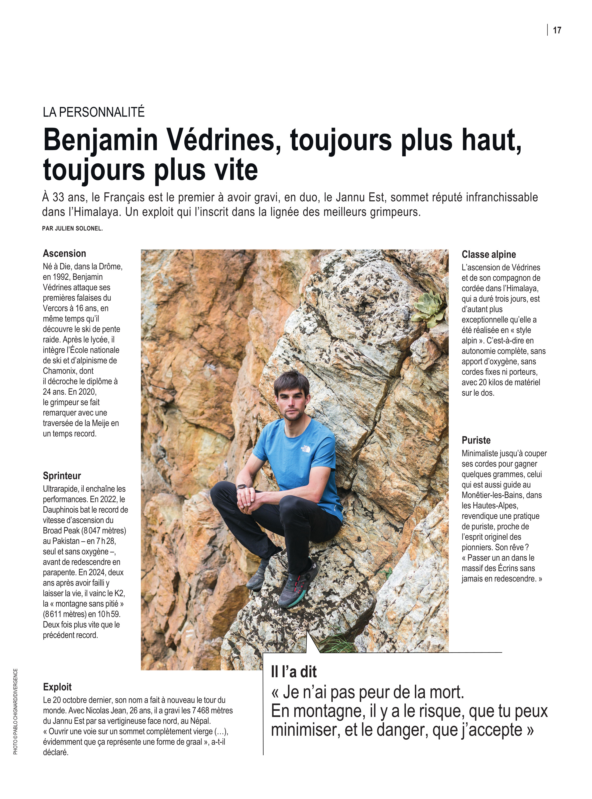 Portrait de l'alpiniste Benjamin Védrines.