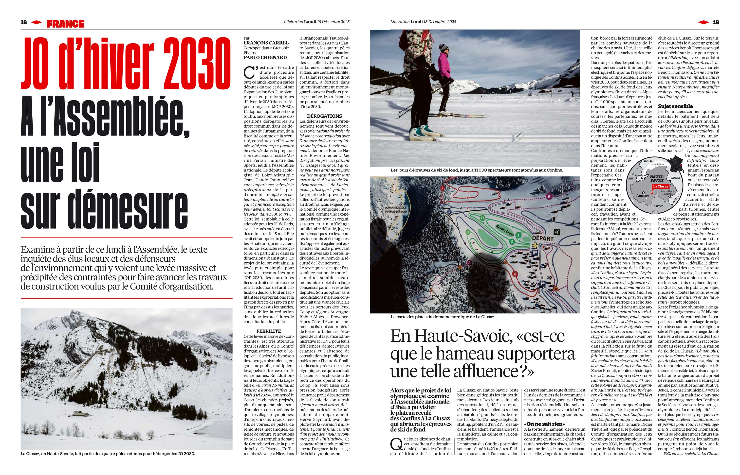 Reportage à la station de ski La Clusaz en Haute-Savoie où se tiendront les épreuves de ski de fond des JO 2030.