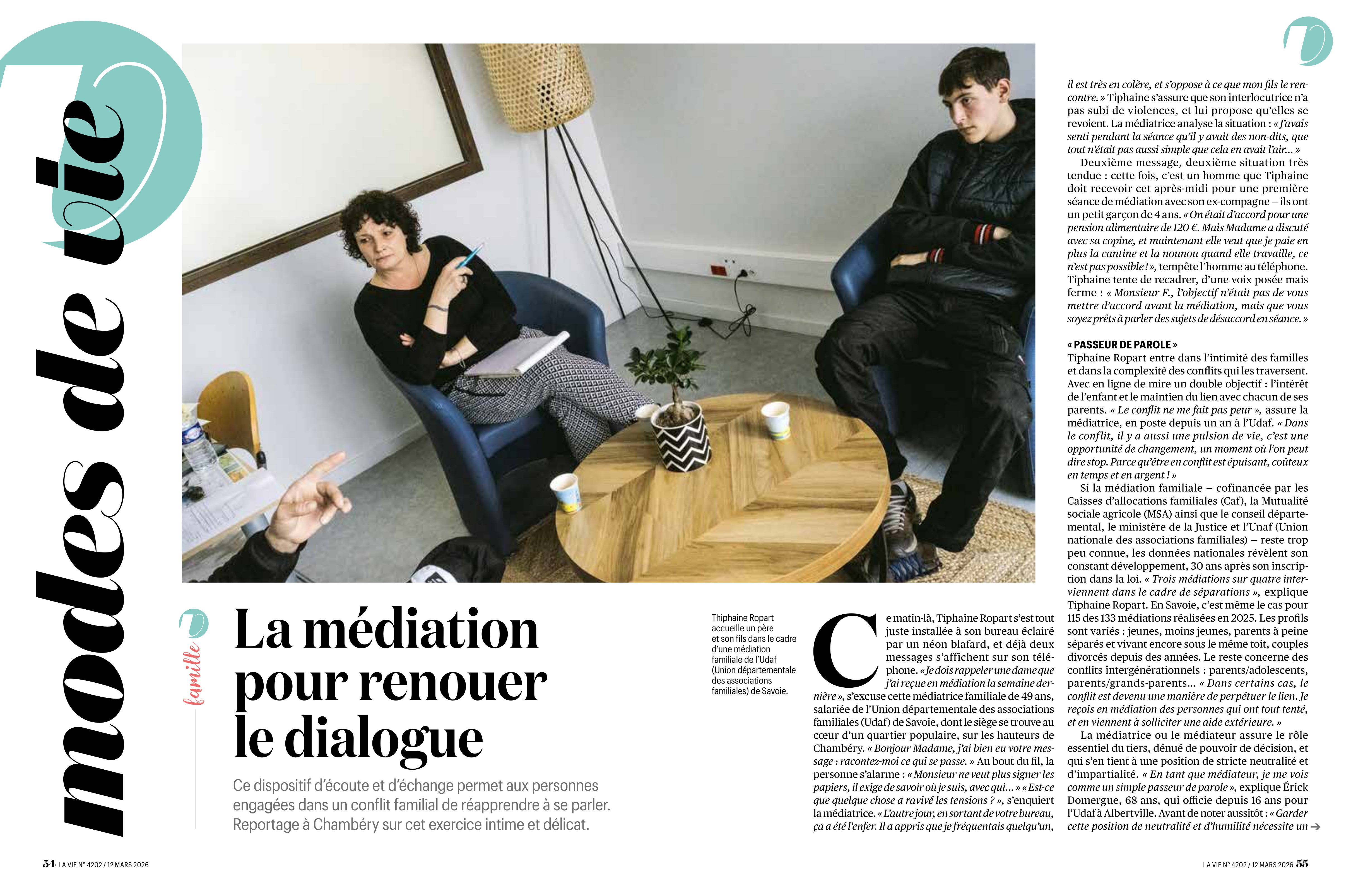Reportage à l'UDAF (Union départementale des associations familiales) de Chambéry lors de médiations familiales.