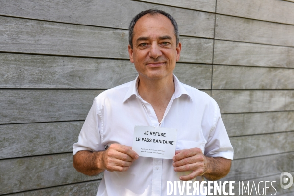 Manifestation antivax et anti passe sanitaire à Die dans la vallée de la Drôme où le taux de vaccination est particulièrement faible. Terre du bio,de résistance et d¹insoumission, le Diois fait figure de territoire réfractaire aux recommandations sanitaires gouvernementales. Alain Maurice ancien maire de Valence et militant anti pass sanitaire.