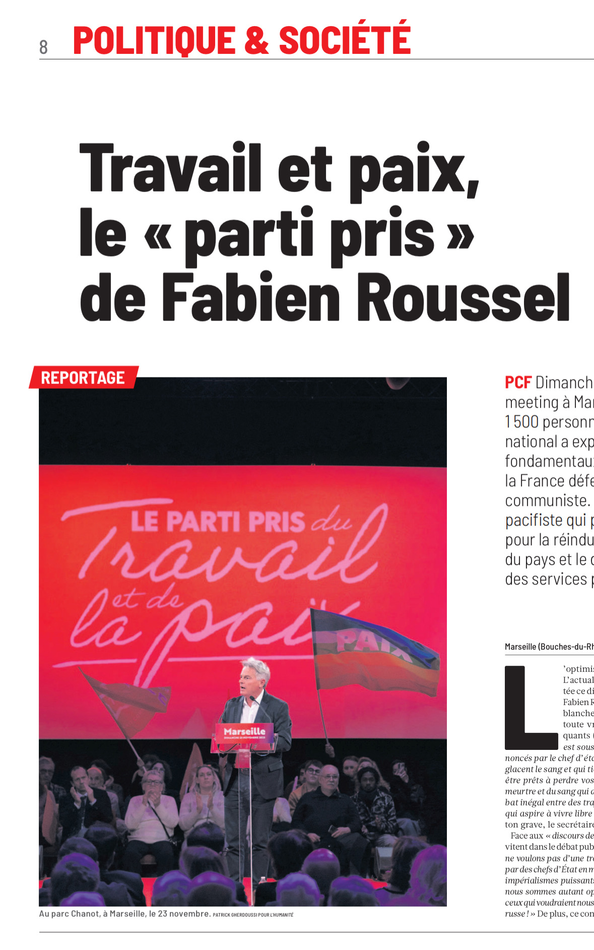 Dans l'Humanité, Fabien ROUSSEL en meeting à Marseille