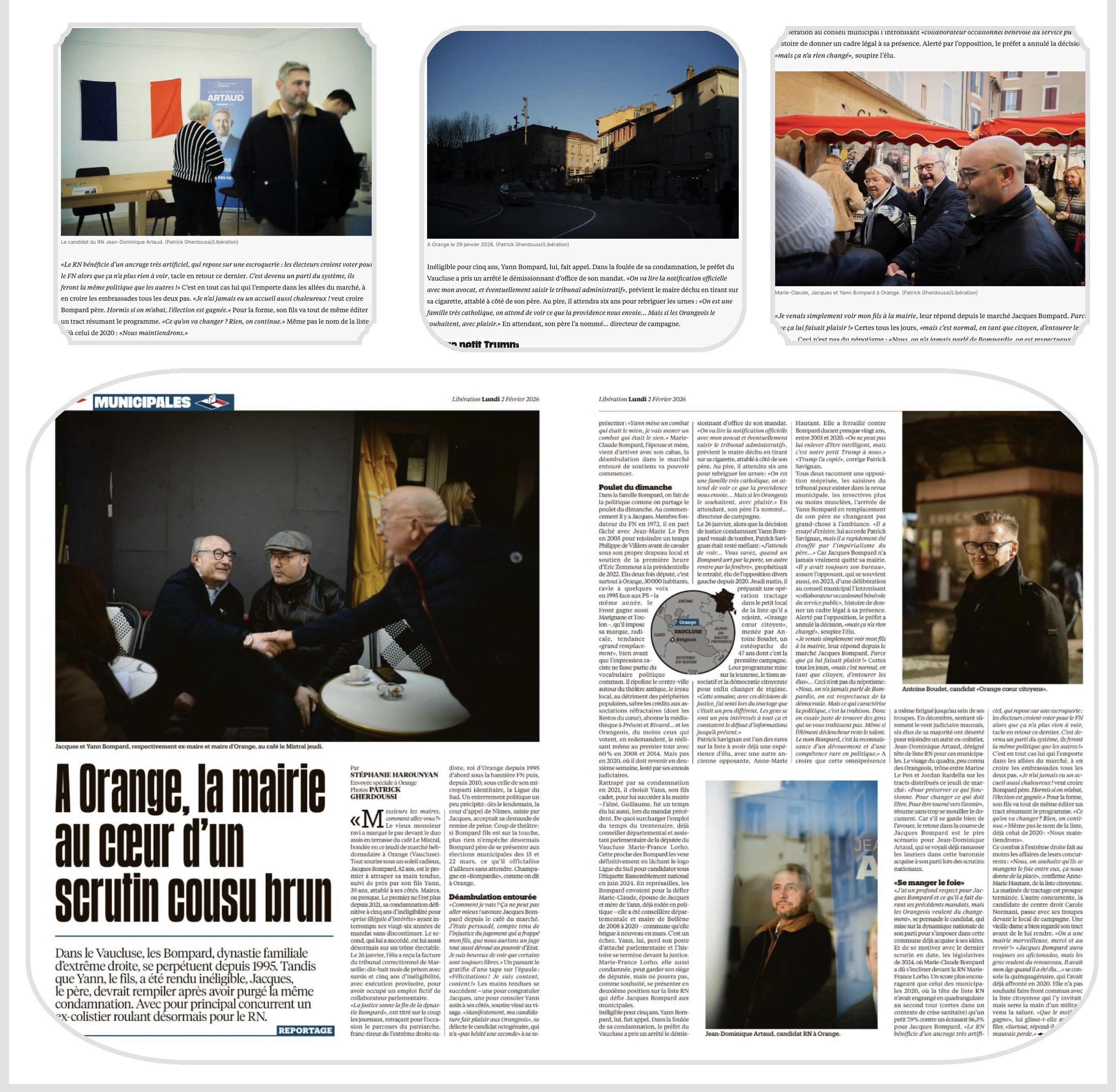 Dans Libération, reportage à Orange (84) ou l'extrème droite dirige la mairie depuis 1995.