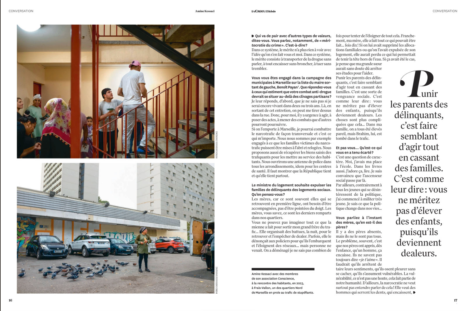 Dans La croix Hebdo, Extrait de reportages sur Amine Kessaci avant le décès de son second frère.