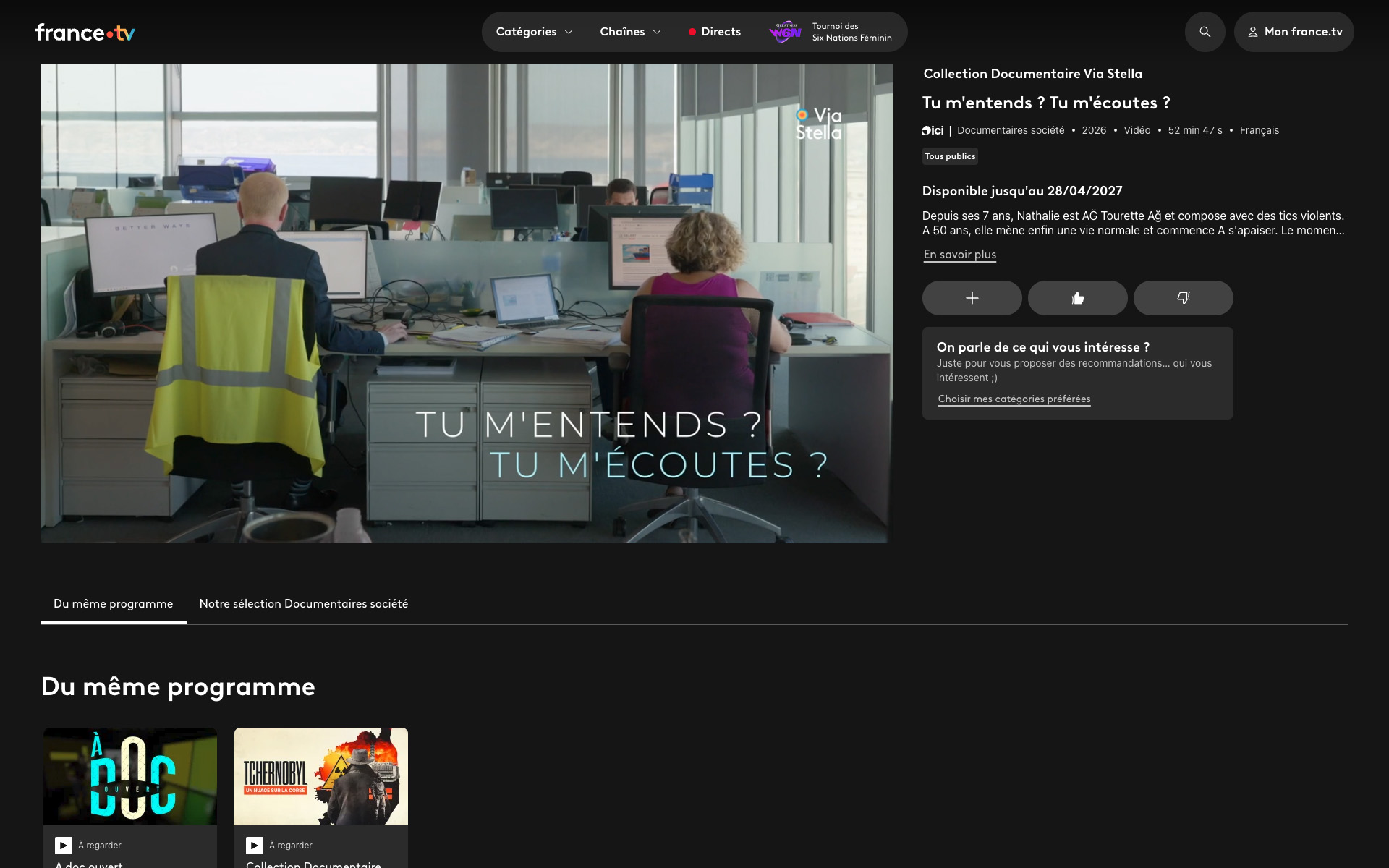 En replay sur France TV le documentraie "Tu m'entends? Tu m'écoutes?" sur lequel j'étais chef op et réalisé par Isabelle Ros.